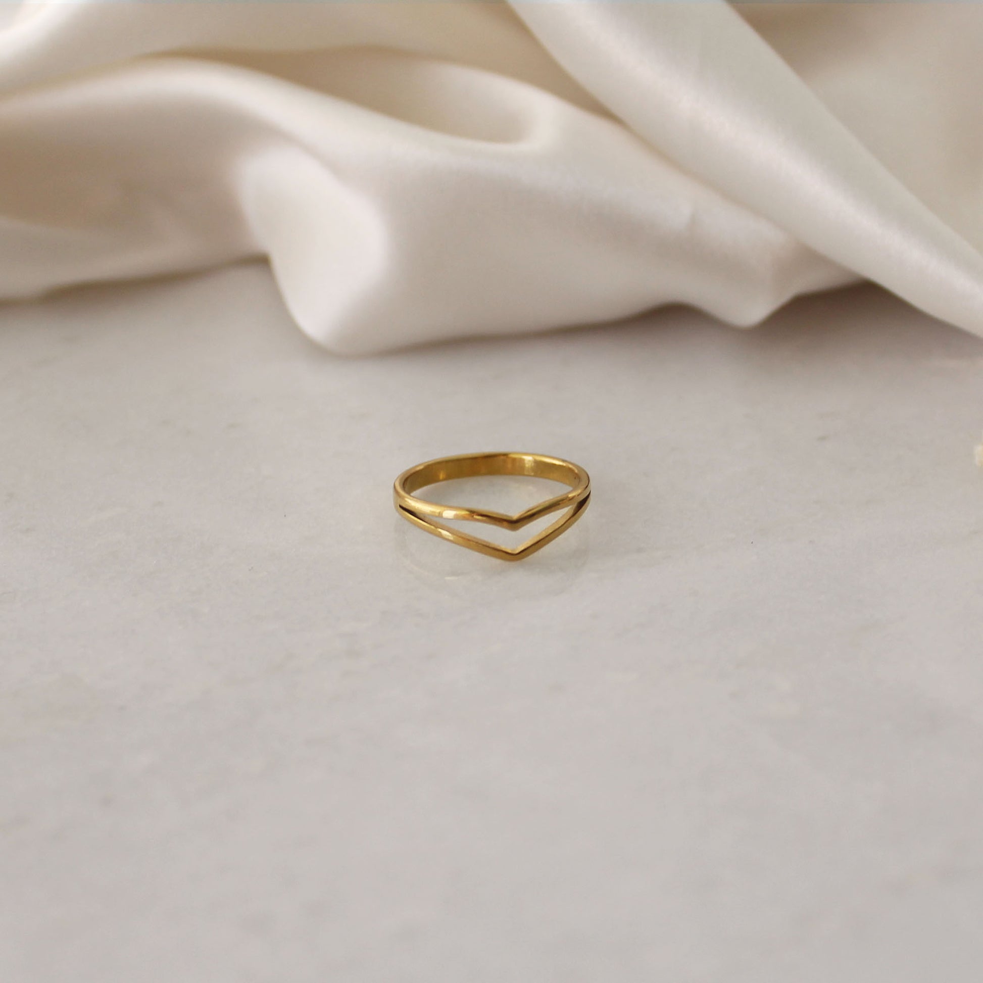 - This listing is for one (1) ring. Featuring a Chevron Double Gold Ring, dainty and perfect for everyday and layering
