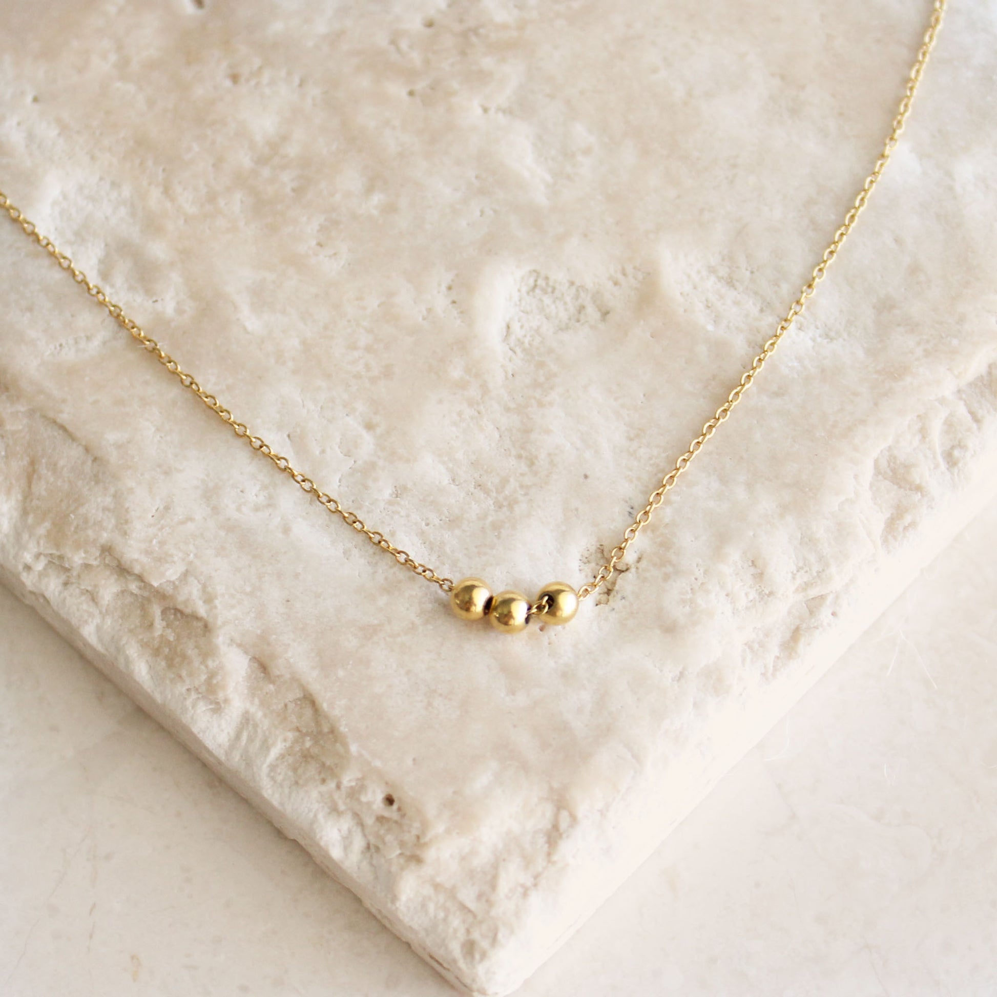 Floating Trio Beaded Gold Necklace