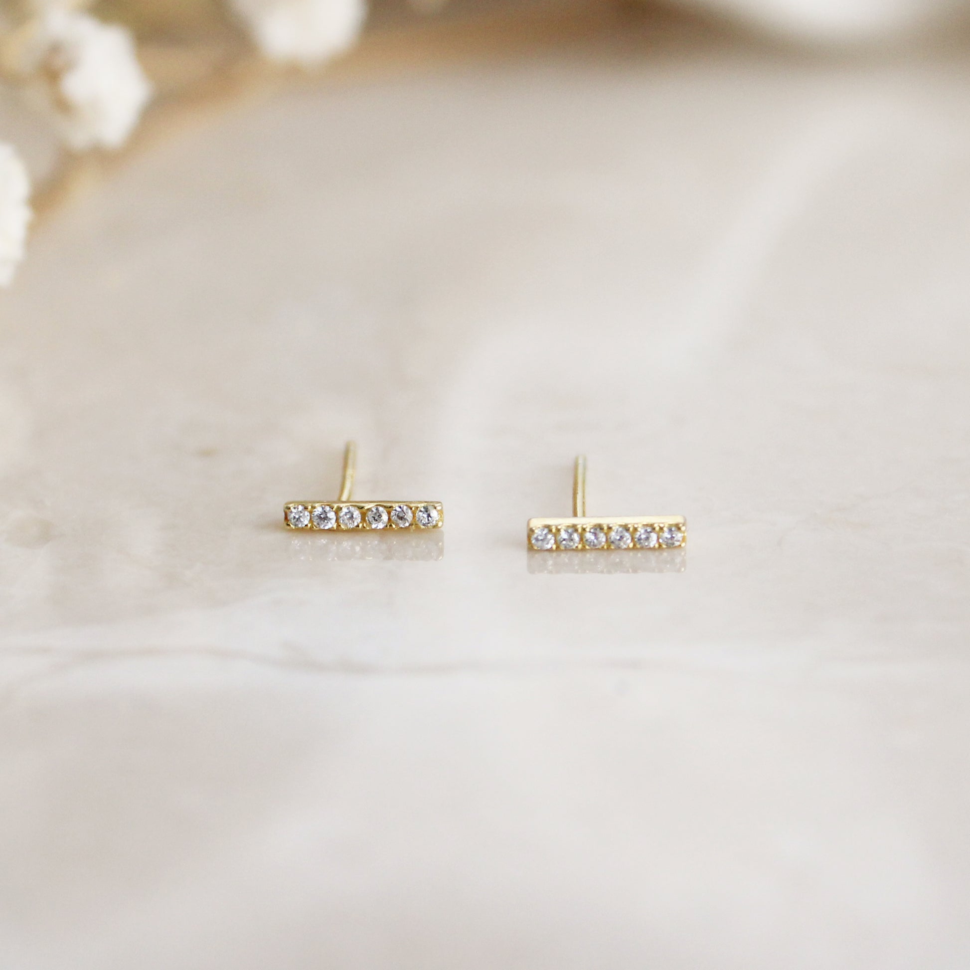 - This listing is for the Pave Bar Stud Earring(s). A perfect every day piece to be worn alone or great layered with each other.