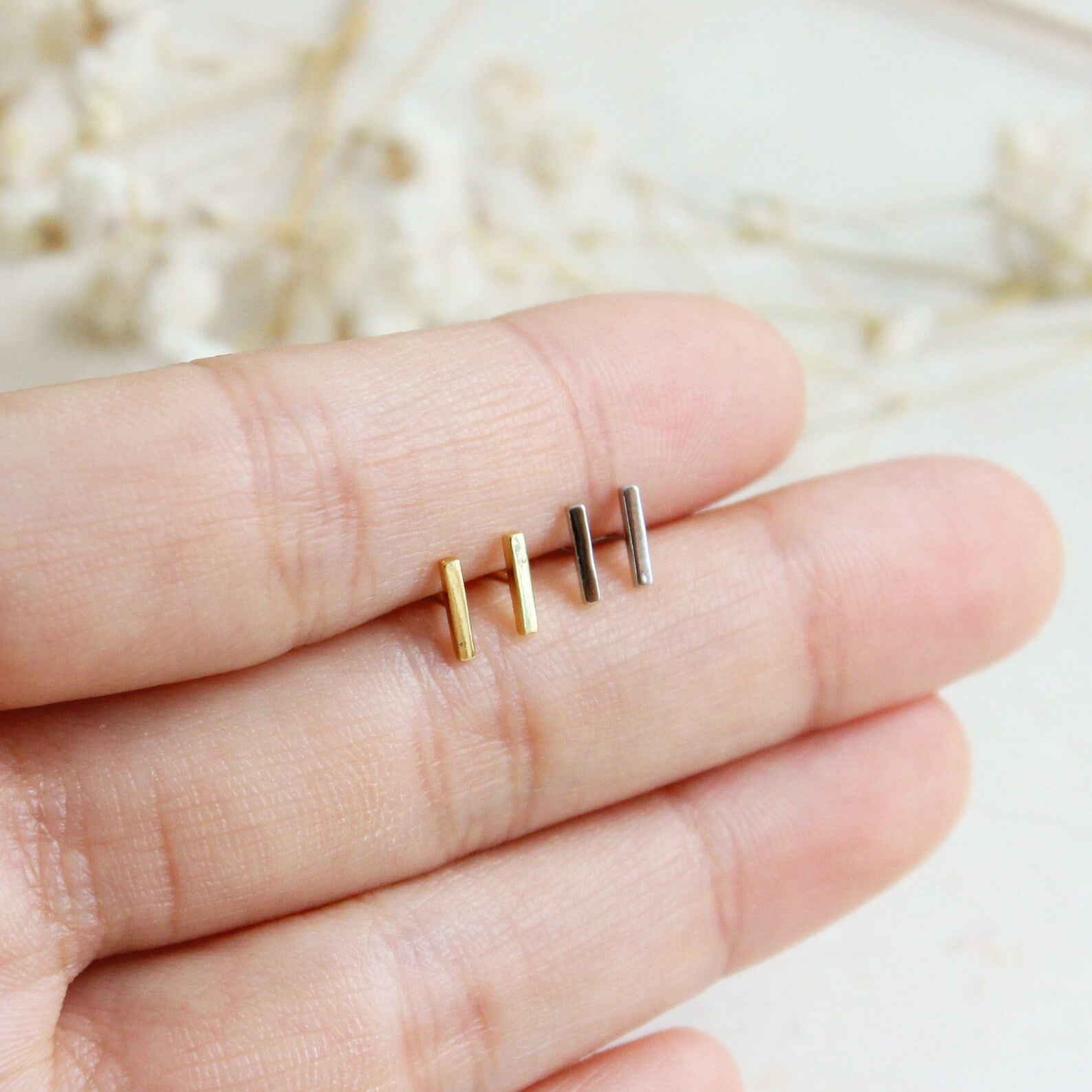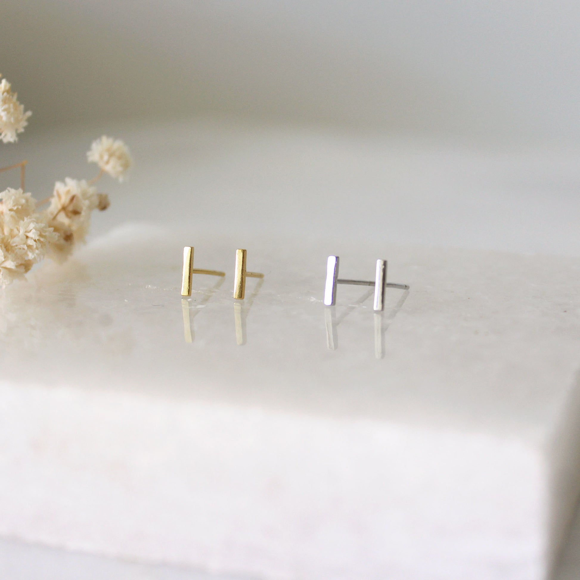 - This listing is for a pair of the Bar Stud Earring. A perfect everyday piece to be worn alone or great layered with each other.