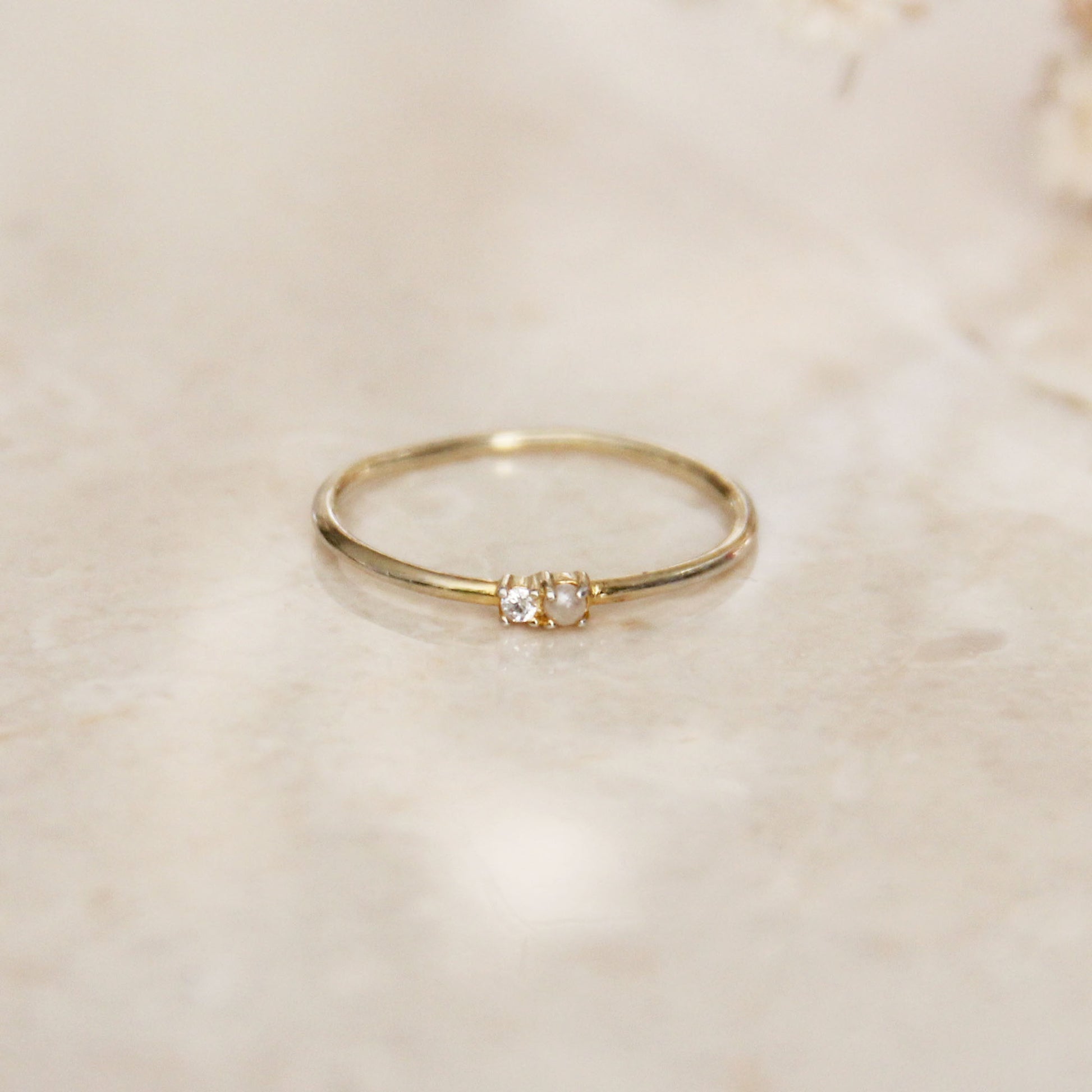 - This listing is for one (1) ring. Featuring a Pearl and CZ Diamond Ring, dainty and perfect for everyday and layering